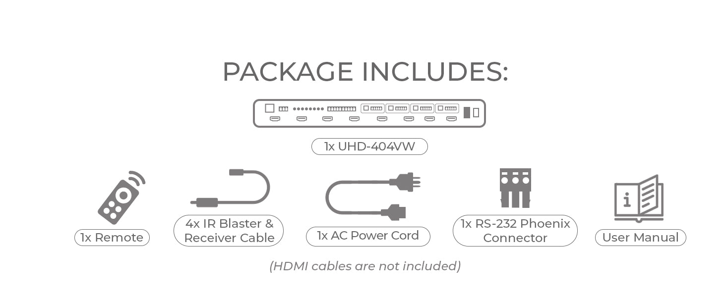 4K@60hz 4x4 HDMI™ Matrix w/ Video Wall (Seamless, Audio Extract)-UHD-404VW