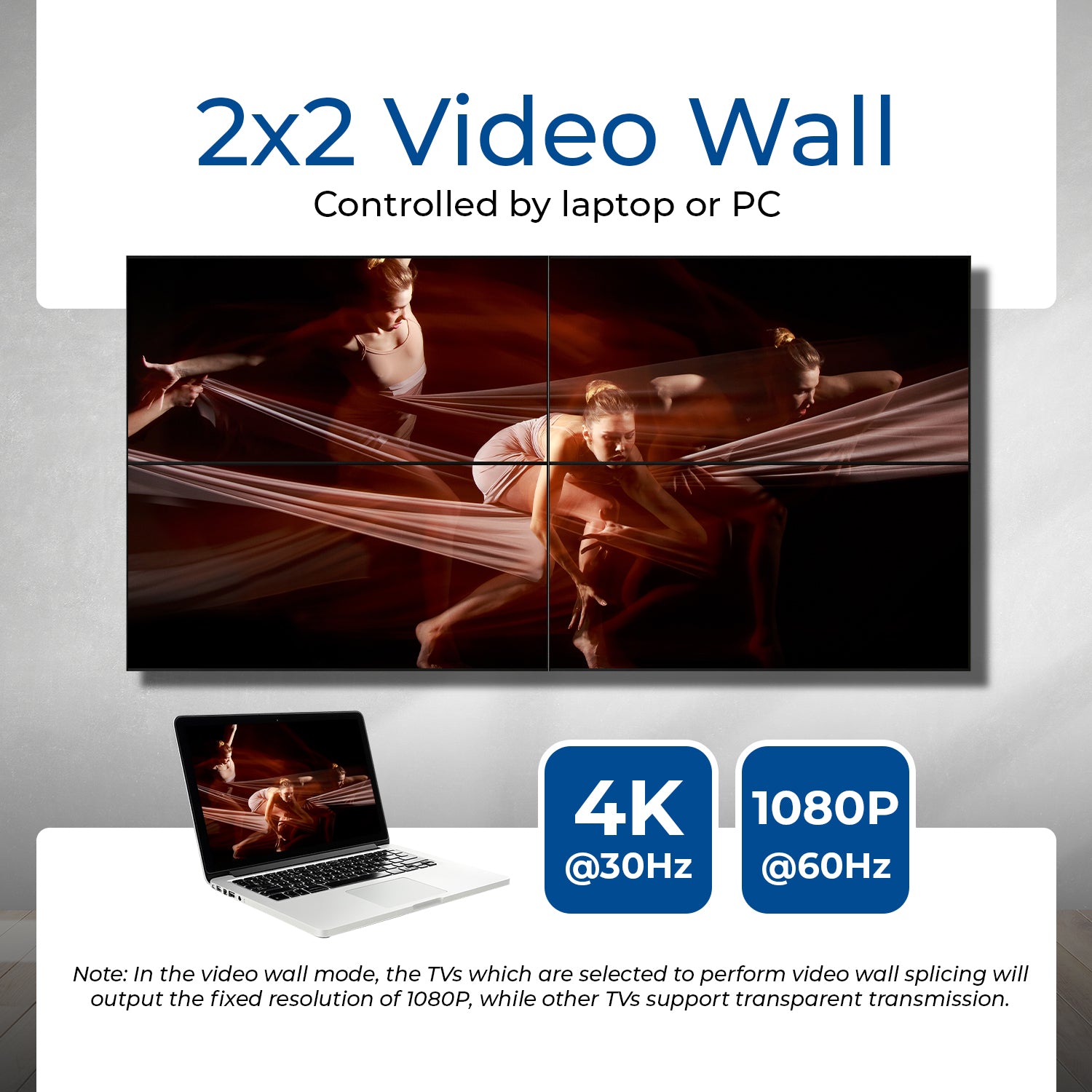 Video Output Resolutions up to 4K@30Hz (Matrix) & 1080p@60Hz (Video Wall) – Provides clear visuals for both standard and large-scale display setups.
