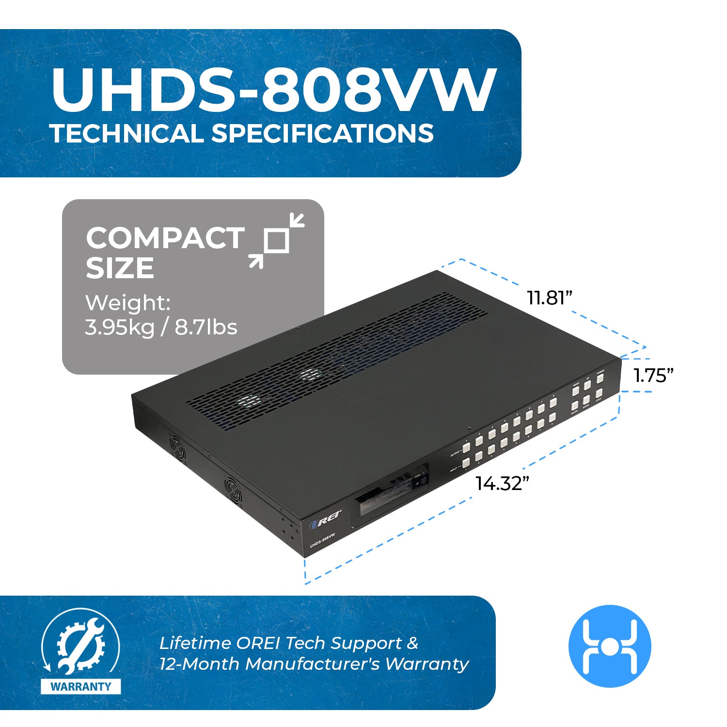UHDS-808VW: 4K@60Hz 4x2 Seamless Matrix with Video Wall