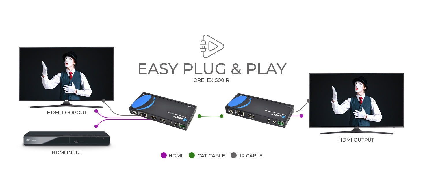 The OREI EX-500IR is a professional 1080p HDMI extender that transmits Full HD signals up to 492 feet (150 m) over a single CAT 6/7 cable. It’s an ideal solution for home AV systems, classrooms, and digital signage setups that require HDMI over Cat 6 extender performance with uncompromised clarity and range.