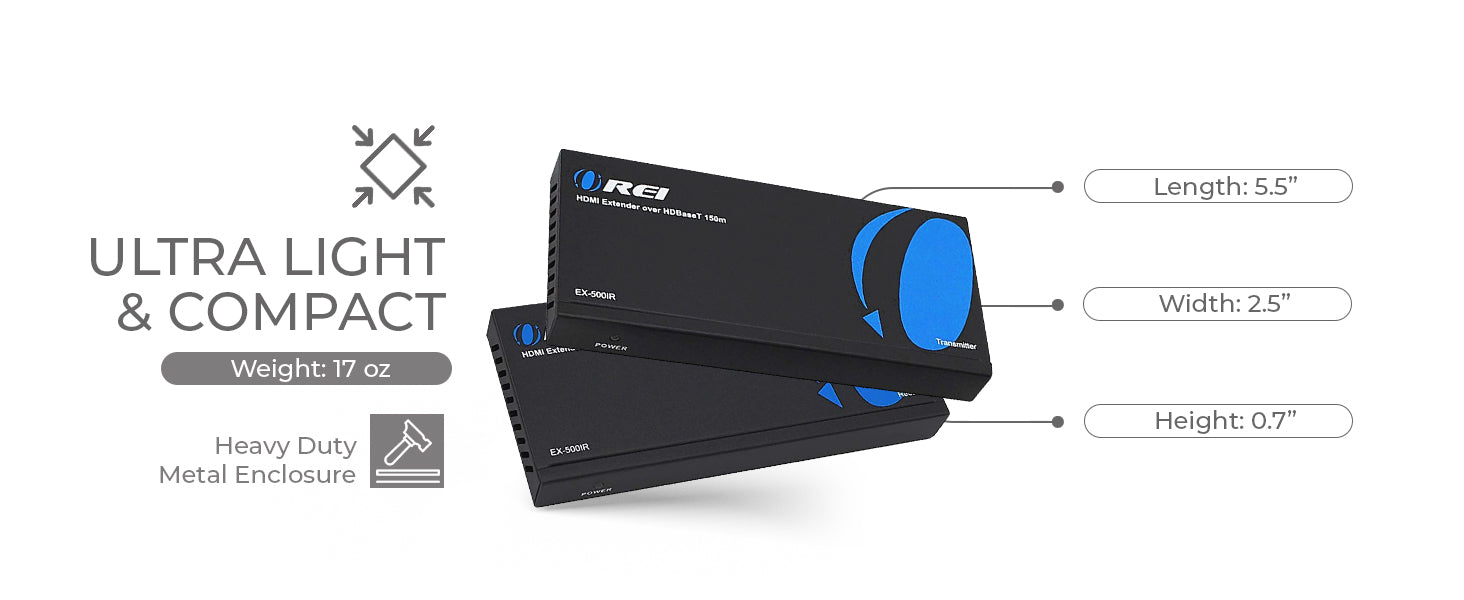 OREI EX-500IR: 1080p HDBaseT HDMI Extender up to 500 feet with POC, Bi- directional IR, RS-232