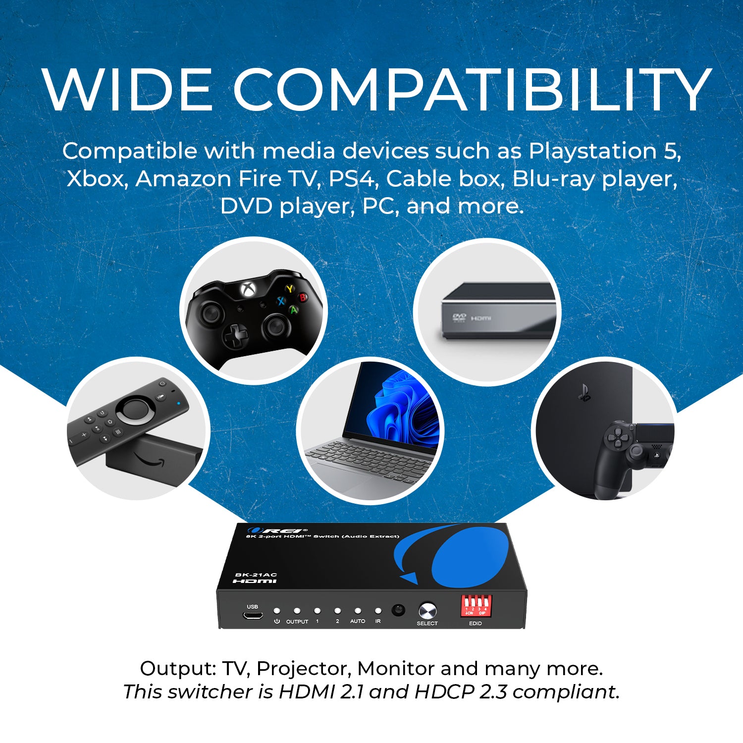 BK-21AC: 8K 2-port HDMI Switch with Audio Extraction