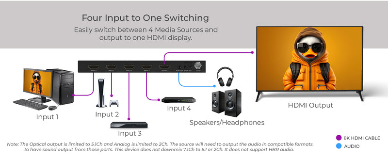8K 4-port HDMI™ Switch (Audio Extract) (BK-41A)