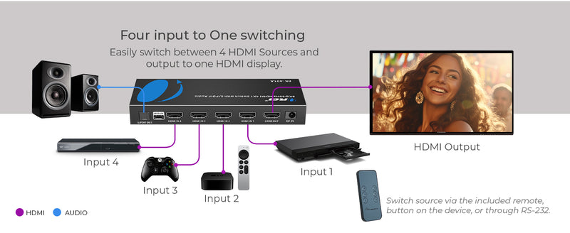OREI BK-401A: 8K 4x1 HDMI Switcher with Audio Extraction