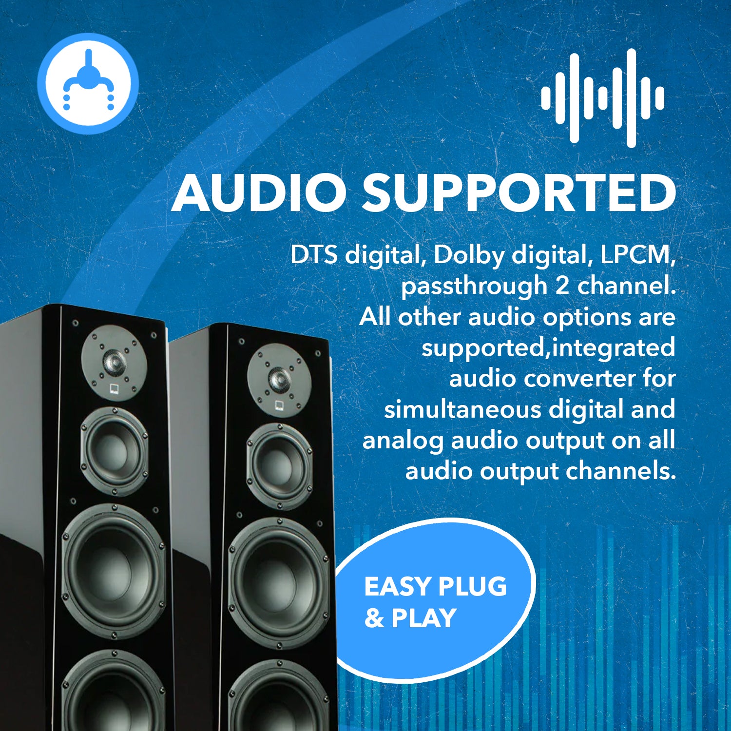 Audio Extraction – Outputs audio through both analog and optical ports for external sound system integration.