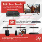 Operating on a 1G Ethernet network with PoE support, the device offers comprehensive control and configuration through a built-in web interface, Telnet, and SSH. Control is made easier using the X4UH-CB to control all your X4UH Series devices on a single network. It supports a broad range of HDMI audio formats, including LPCM 2.0/5.1/7.1, Dolby Digital (Plus, EX, True HD), and DTS (96/24, EX, High Res, HD Master, DSD). The smart networking design ensures easy, flexible installation for commercial AV, broadcast, and professional environments.