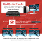 The X4UH-KVM includes two relay channels and two I/O ports for contact control, supporting diverse AV control scenarios. It enables unicast, multicast, point-to-point, matrix switching, and scalable video wall deployments up to 9x9 setup. Intelligent video wall class management and real-time MJPEG sub-stream preview enhance monitoring and operational efficiency.