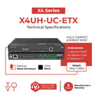 The X4UH-UC-ETX offers unmatched flexibility for AV distribution, video walls (up to 9x9), matrix switching, and control. Ideal for professional AV, control centers, and modern collaboration environments.