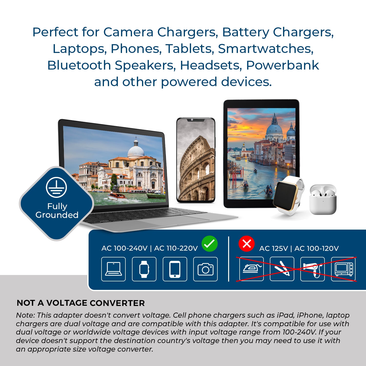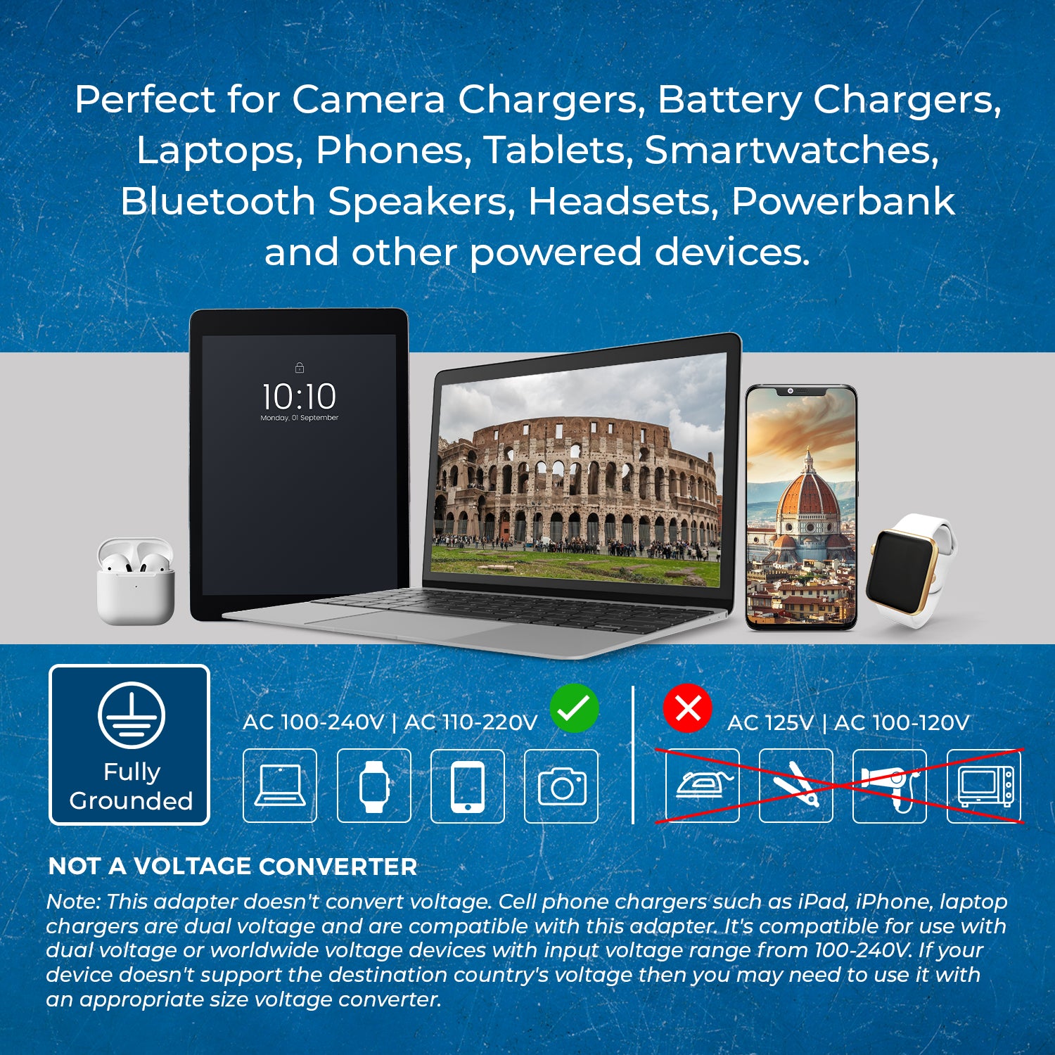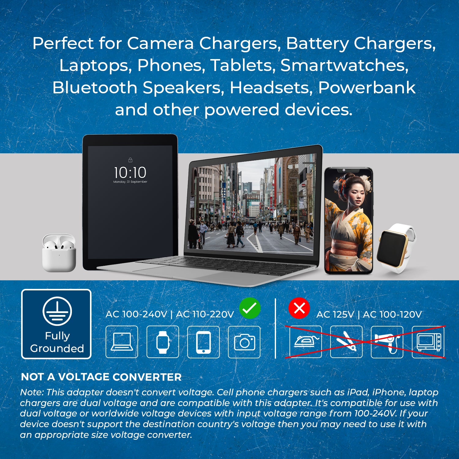 Not always. Electronics like cell phone chargers or laptop chargers are designed to operate on a wide range of voltages, ranging from 100 to 240V or 120 to 240V. This means that a travel adapter plug will provide enough power to your device, regardless of the country you’re in. However, a lot of electronics sold in North America run only on 120V. This means that you will need a voltage converter when travelling to countries where the output is 220V (which is most of the world). OREI Travel Adapters don’t convert voltage, so confirm the input voltage rating on your device prior to travelling to determine if you need a converter on your trip.