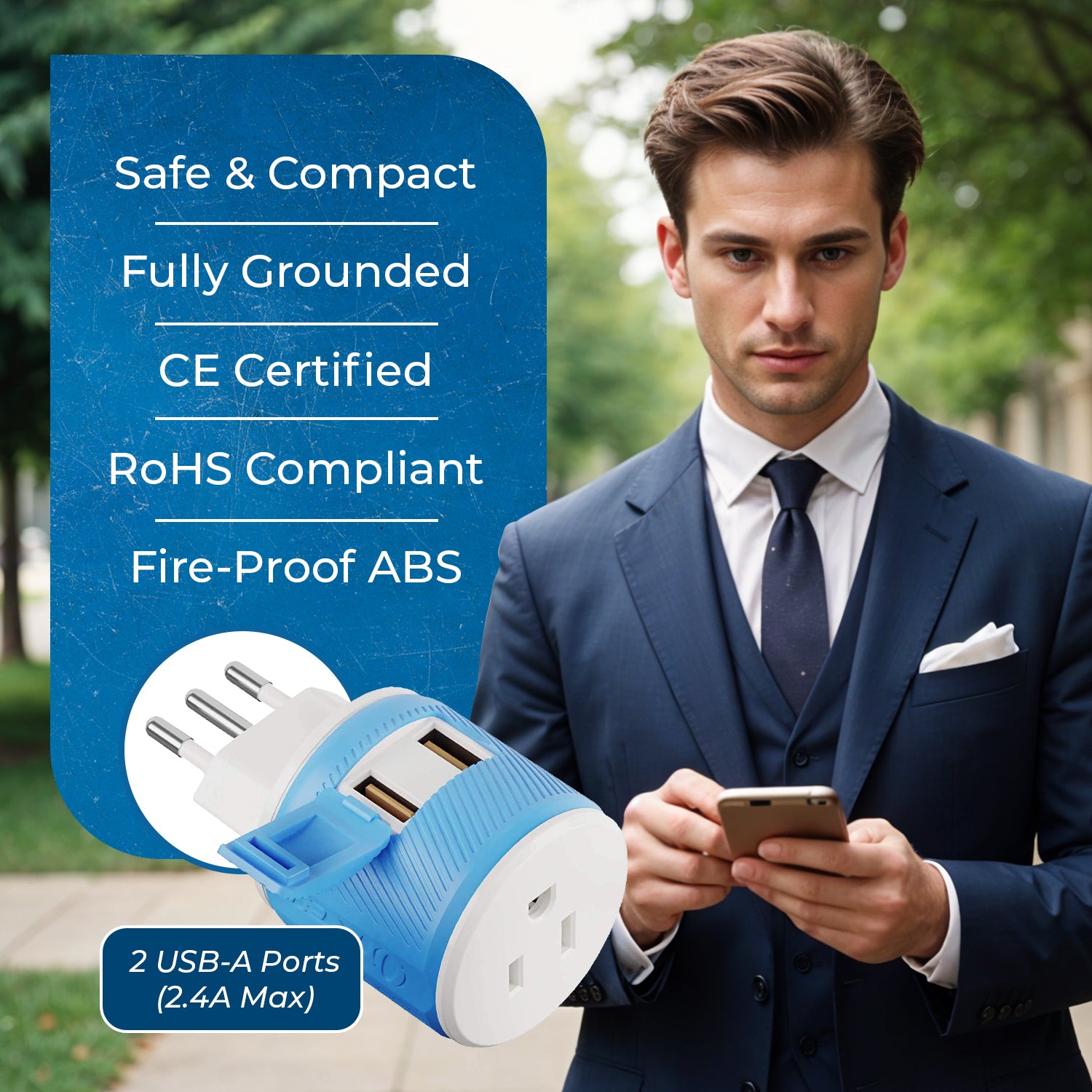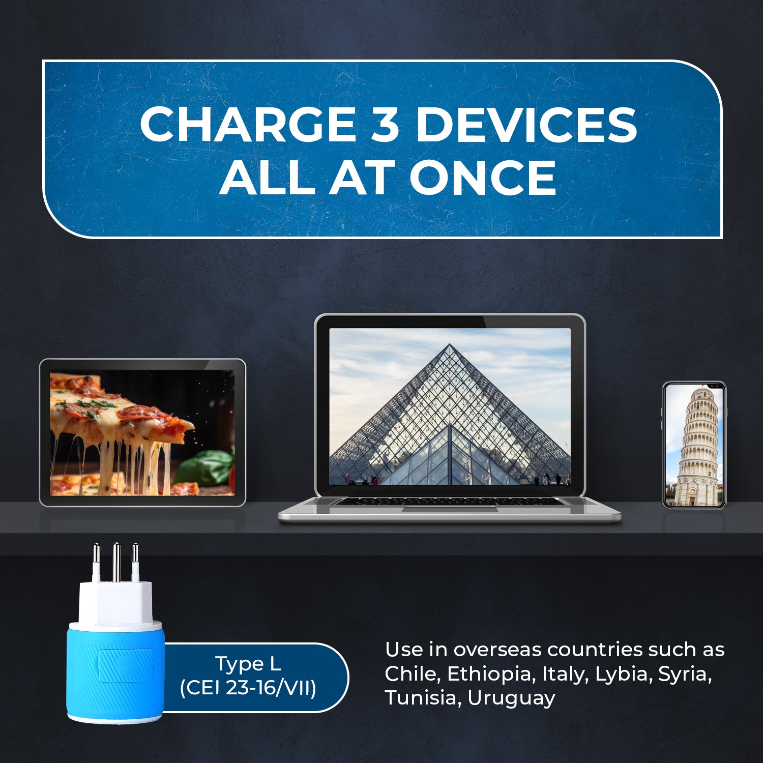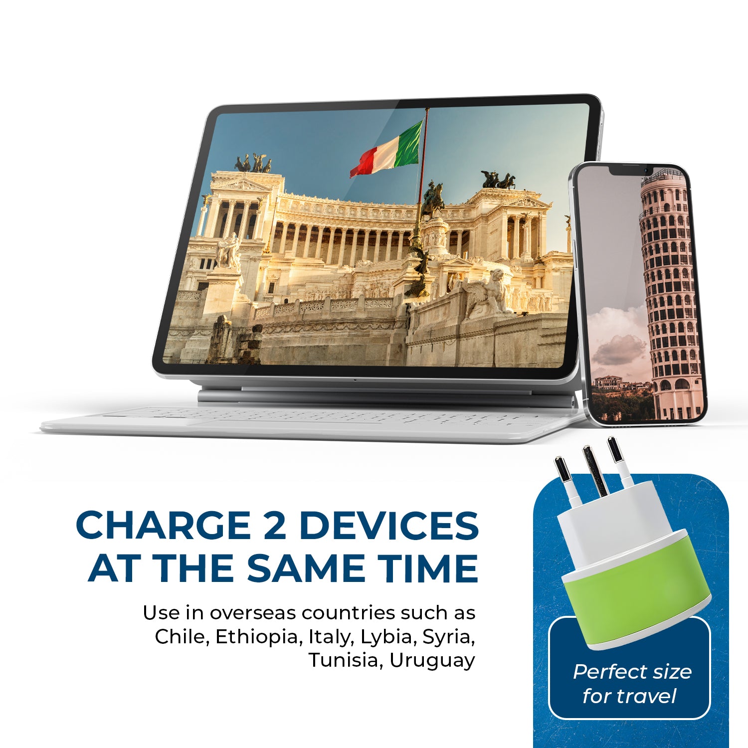 Not all outlets are created equal. Every part of the world has a different outlet style, which means that the plugs you use on a daily basis at home may not fit in the outlets in, say, Italy or China. Travel adapter plugs provide an output that matches your destination country, while accepting the plugs for your current devices.