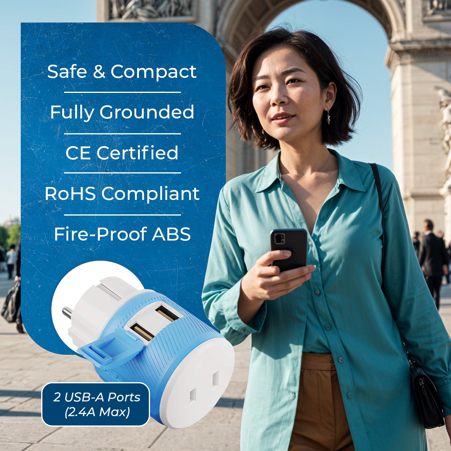 All outlets are sorted into different types based on the unique styles - these types are the organized by country. To determine which adapter you should purchase, first find out the type of outlet used in your destination country. Next, decide how many devices you need to plug in while you travel - and if they require standard plugs or USB connectors. Last, visit our Adapter Search Engine and enter the data - we’ll provide you with a list of adapters that’ll fit the bill.