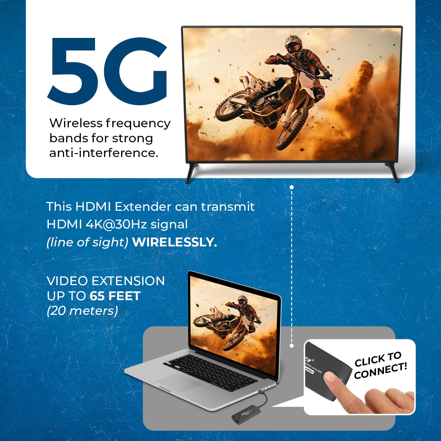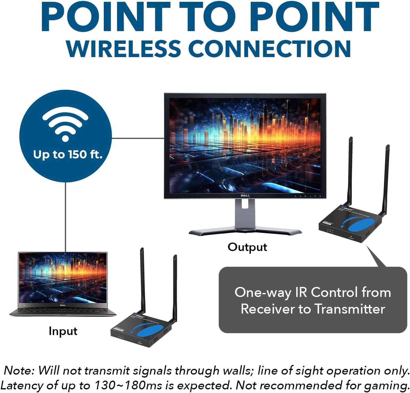 Our Wireless HDMI Extenders fulfills your desires to watch the videos in high-quality wirelessly. These low latency wireless extenders is all you need to get the best picture wirelessly without having the hassle of connecting multiple cables for video transmission. Absolutely plug & play setup.