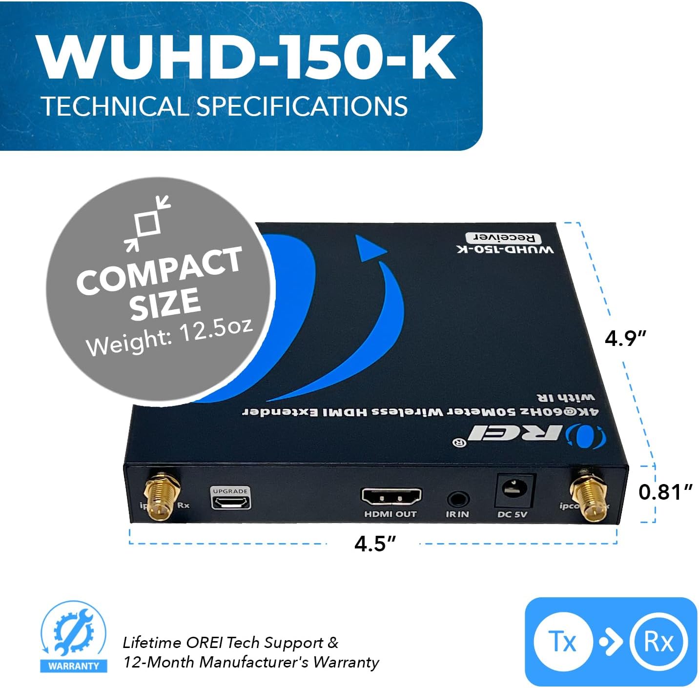 OREI WUHD-150-K: 4K@60HZ WIRELESS HDMI™ EXTENDER (LOOP, IR) - 165FT