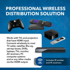• Wireless Transmission up to 165ft (50m) – Transmits HDMI signals wirelessly with line-of-sight for flexible installation without long cables.
