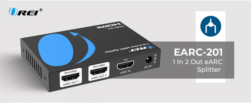 The OREI EARC-201 is a high-performance ARC/eARC audio splitter designed to distribute audio returned from a TV to two soundbars or audio systems simultaneously. Built for modern home theater environments, it ensures stable multi-channel audio transmission while maintaining full compatibility with advanced surround sound formats.