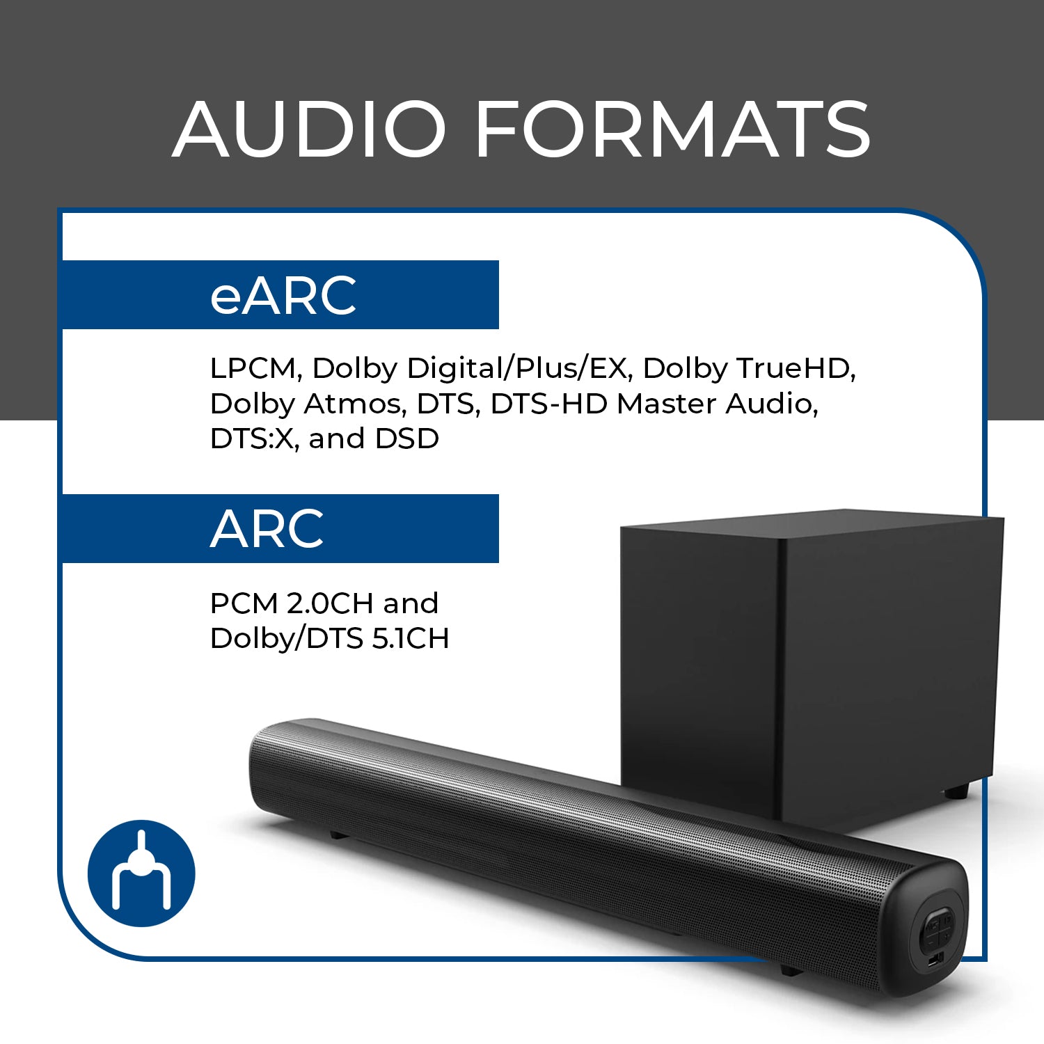 eARC Audio Formats – Supports LPCM, Dolby Digital/Plus/EX, Dolby TrueHD, Dolby Atmos, DTS, DTS-HD Master Audio, DTS:X, and DSD.