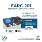 Featuring a slim, space-saving form factor, the EARC-201 integrates easily into home AV setups without clutter. Its plug-and-play operation allows quick installation, delivering reliable performance for dual audio system configurations.