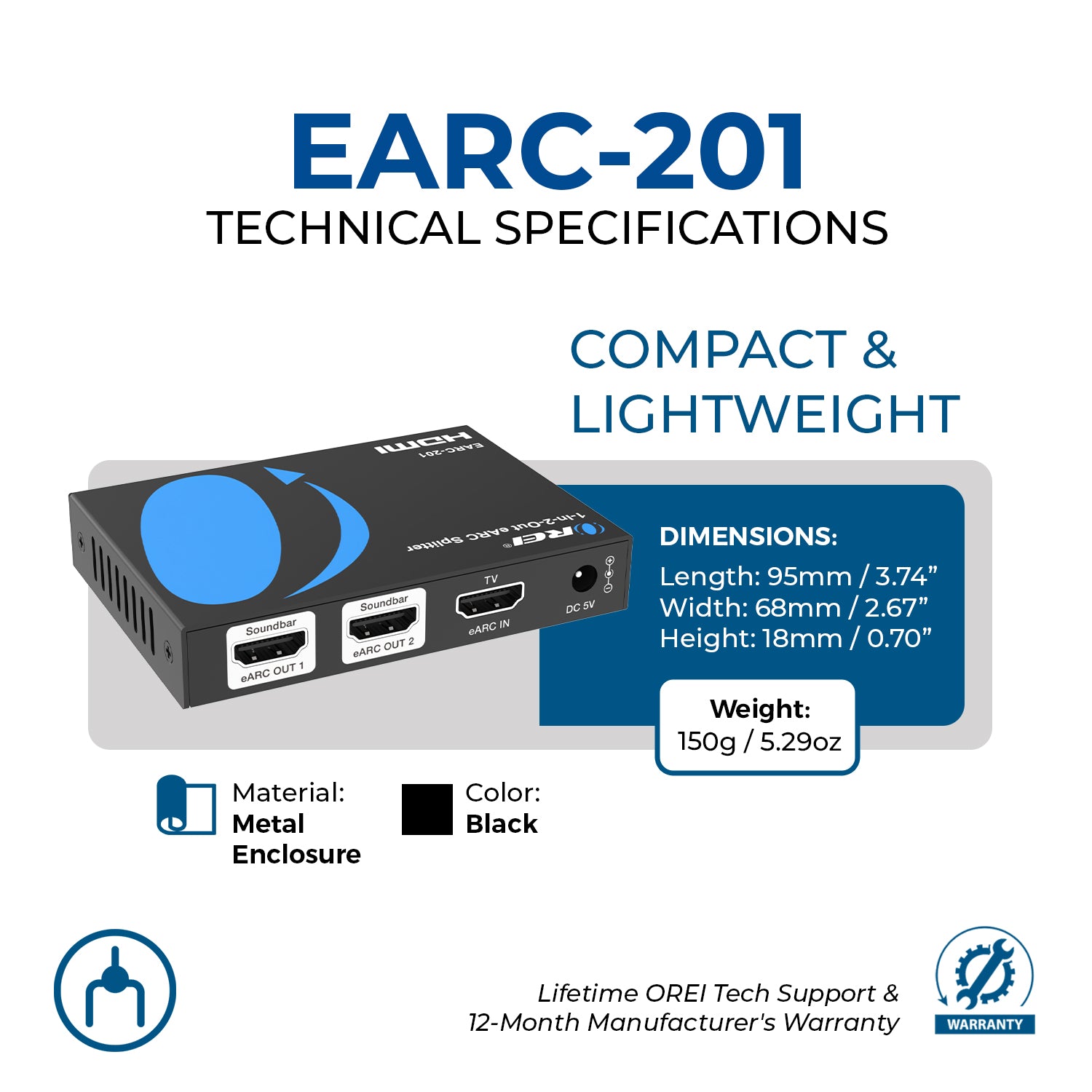 OREI EARC-201: 1-In-2-Out eARC HDMI™ Audio Splitter