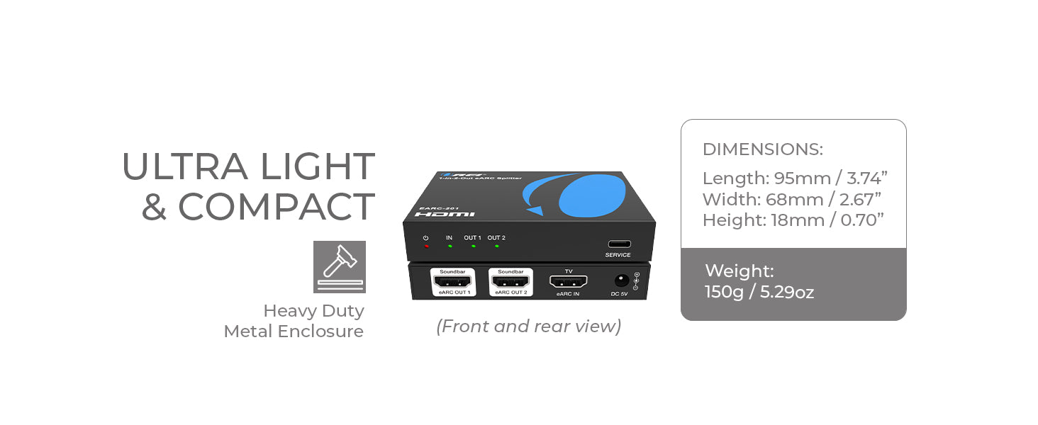 In addition, the device supports CEC control, enabling users to adjust soundbar volume directly through the TV’s remote. With its compact, plug-and-play design, the EARC-201 provides seamless integration into home entertainment systems while maintaining exceptional performance.