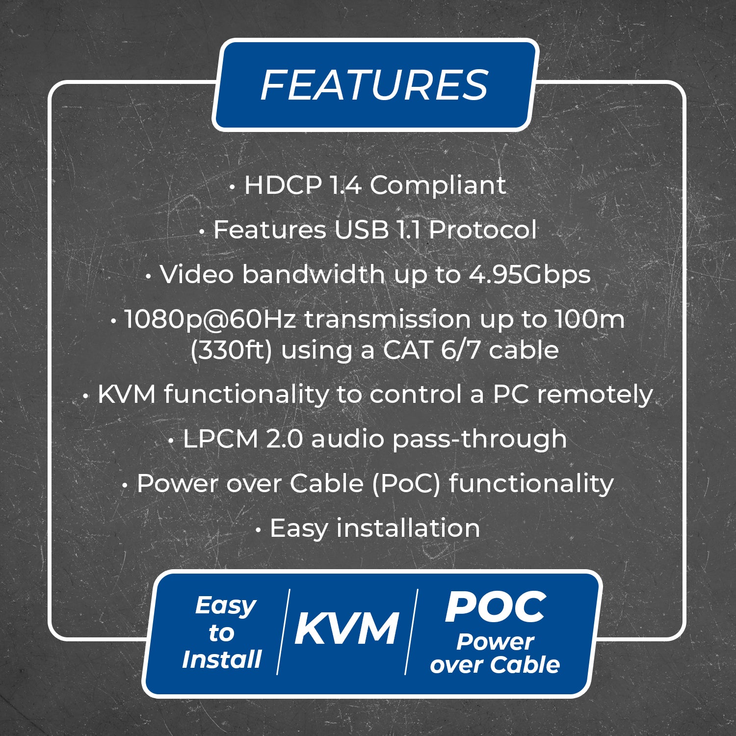 1080p HDMI™ Extender (Loop, KVM) - 330ft (Cat6) (HD-EX330-KVM)
