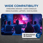 - Bi-directional IR Control – Enables remote control of the source from the receiver and vice versa.