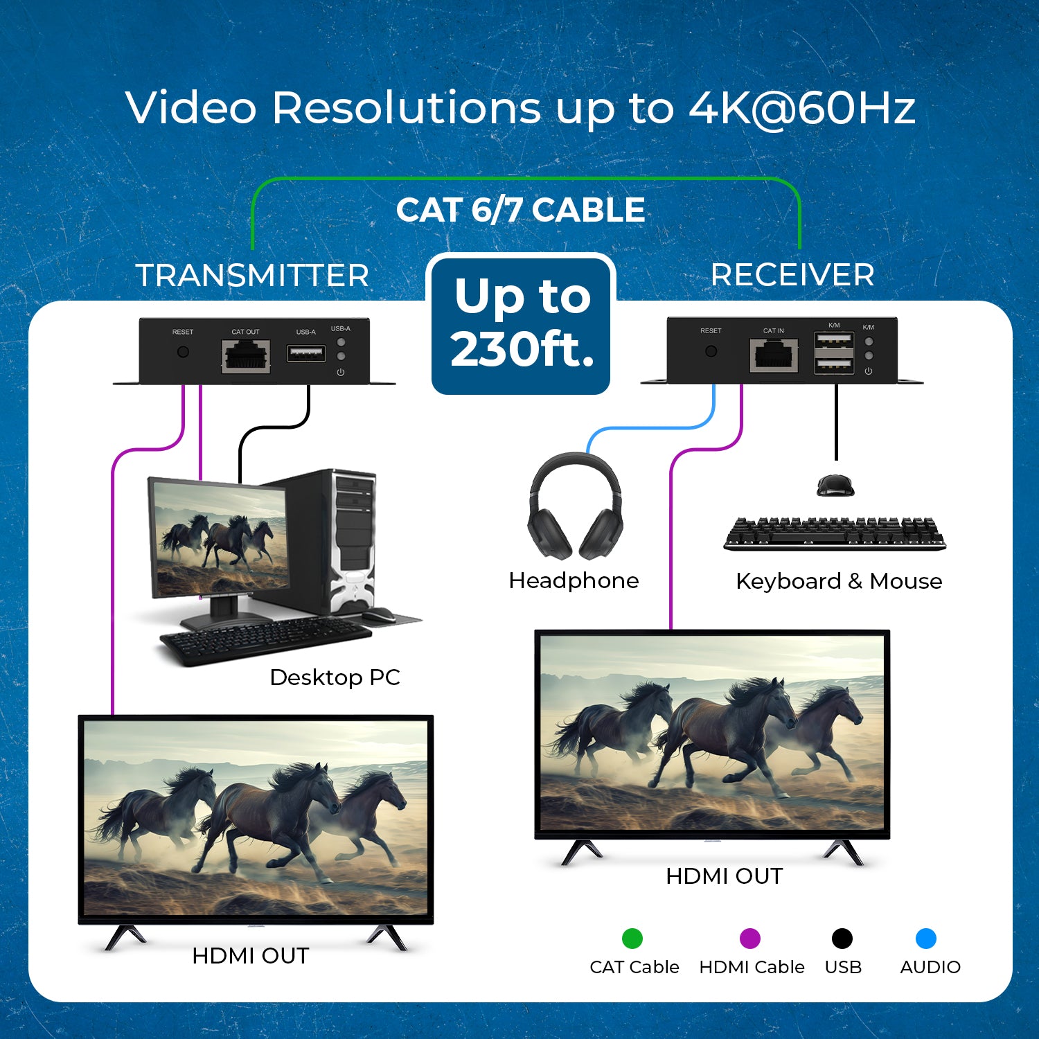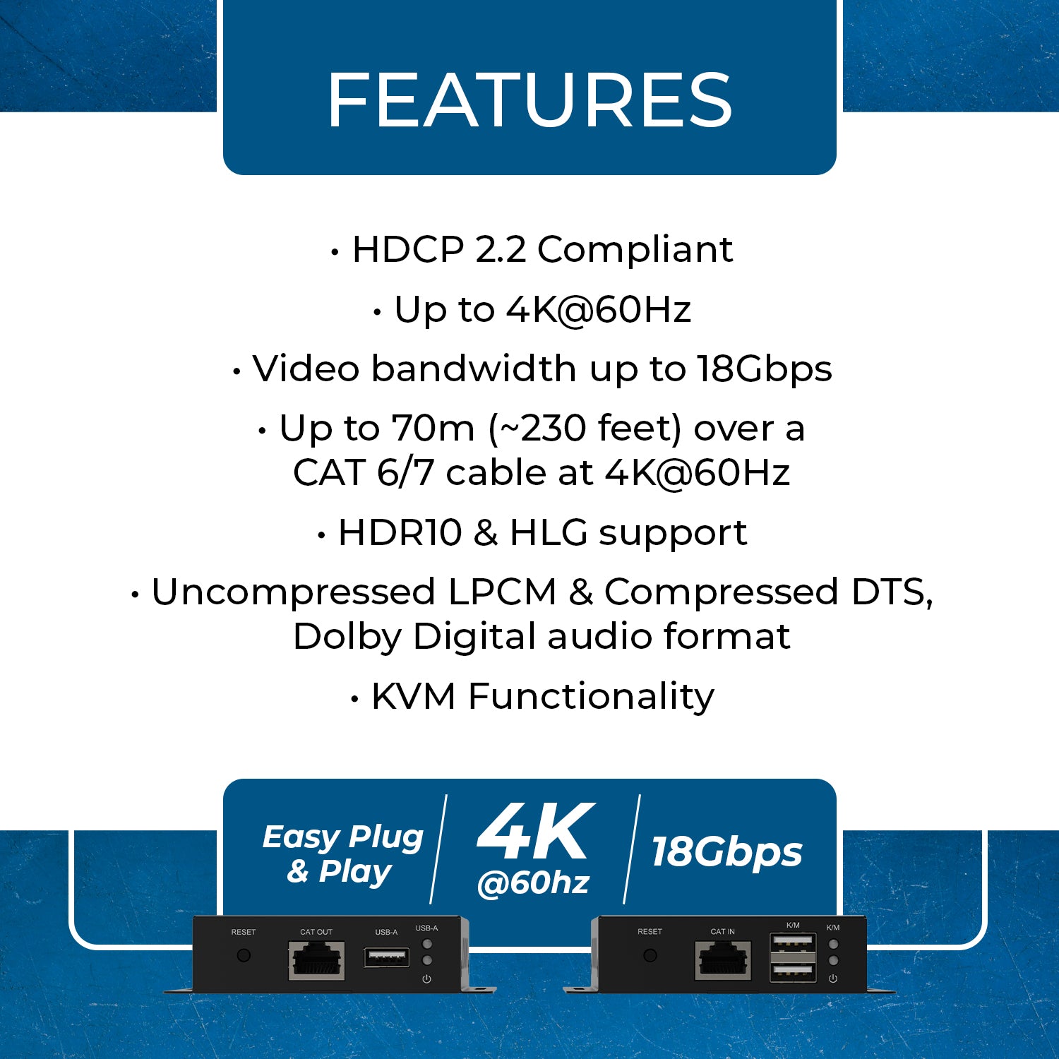 4K@60hz HDMI™ Extender (KVM) - 230ft (Cat6) (UHD-EX230-KVM1)