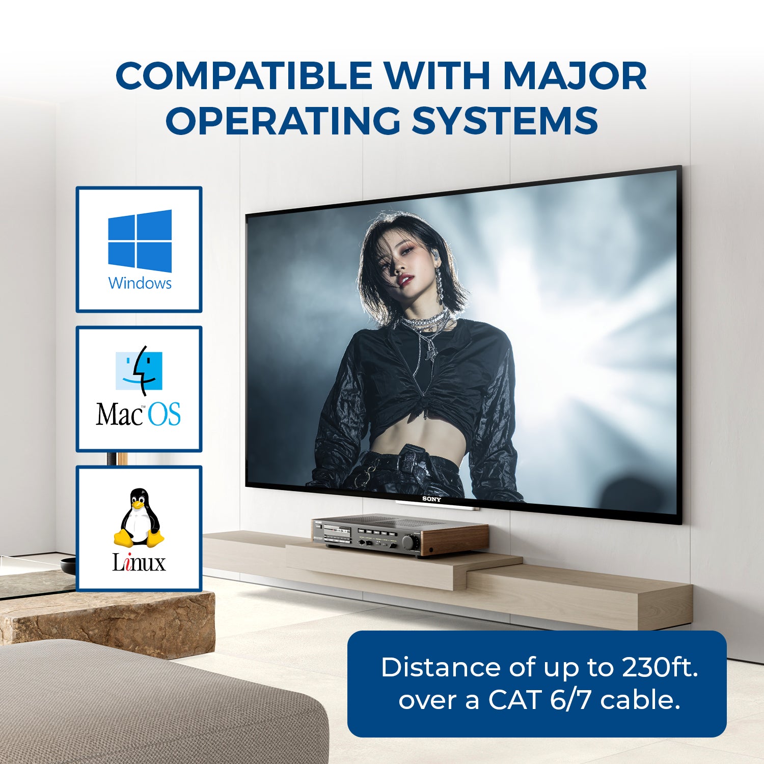 - Extends media up to 70 meters – Reliable HDMI transmission over CAT6/7 cable at 4K@60Hz.