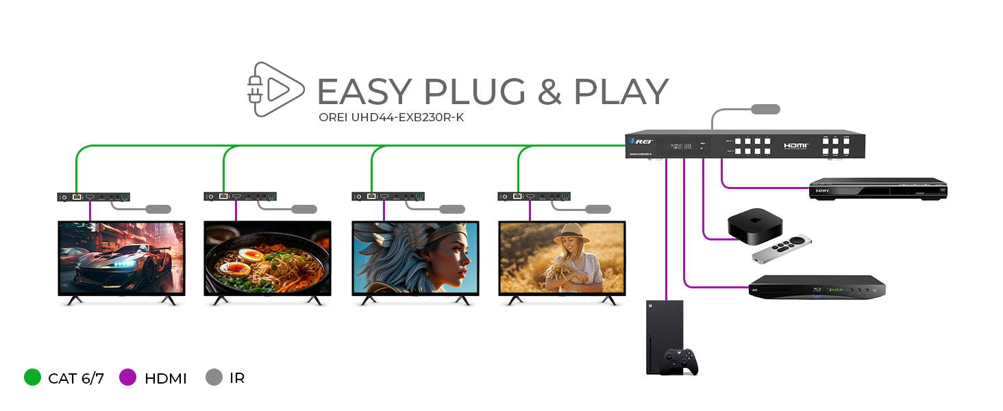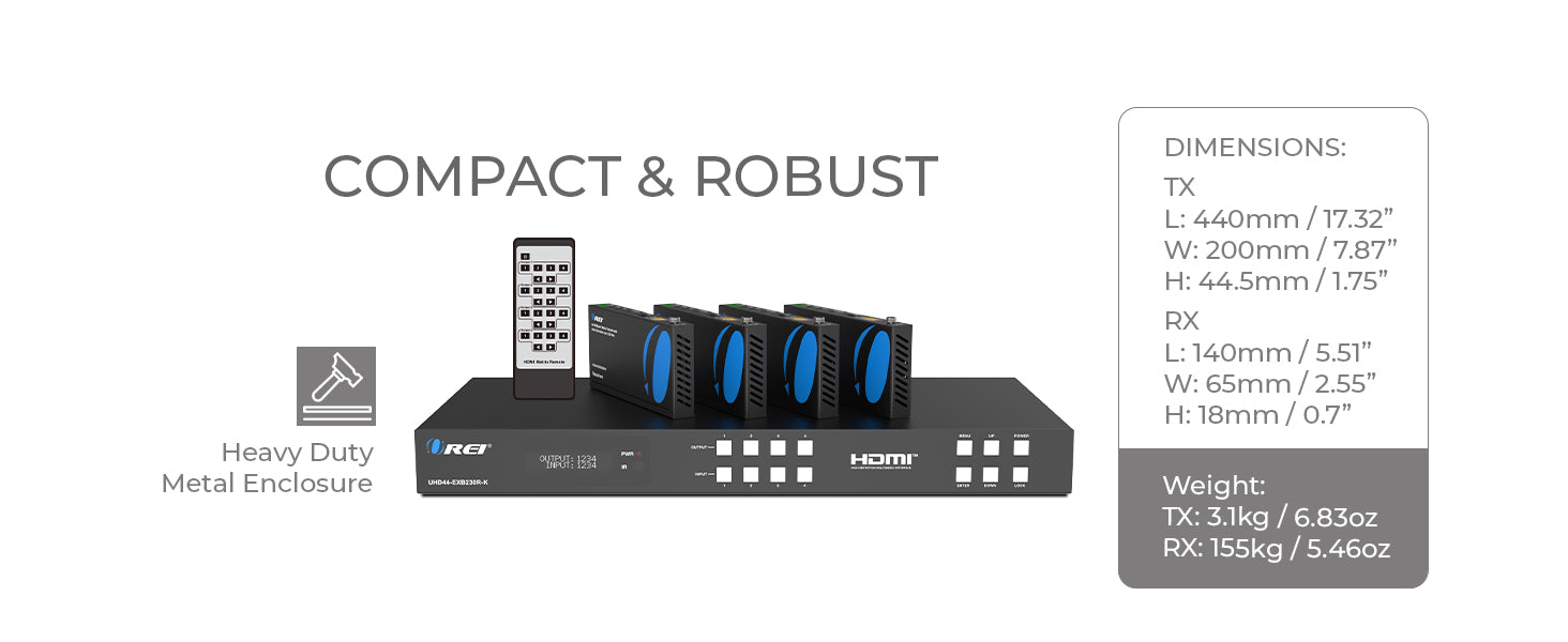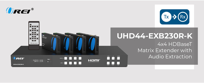 OREI UHD44-EXB230R-K: 18Gbps 4×4 HDBaseT Matrix (230ft)