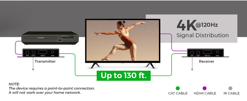 - 4K@120Hz HDMI extender over ethernet up to 130 feet