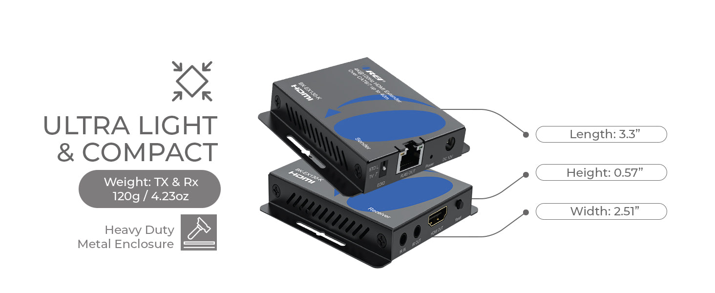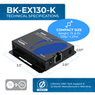 The BK-EX130-K is a compact, high-performance HDMI extender designed to transmit ultra-high-definition audio and video signals over long distances.