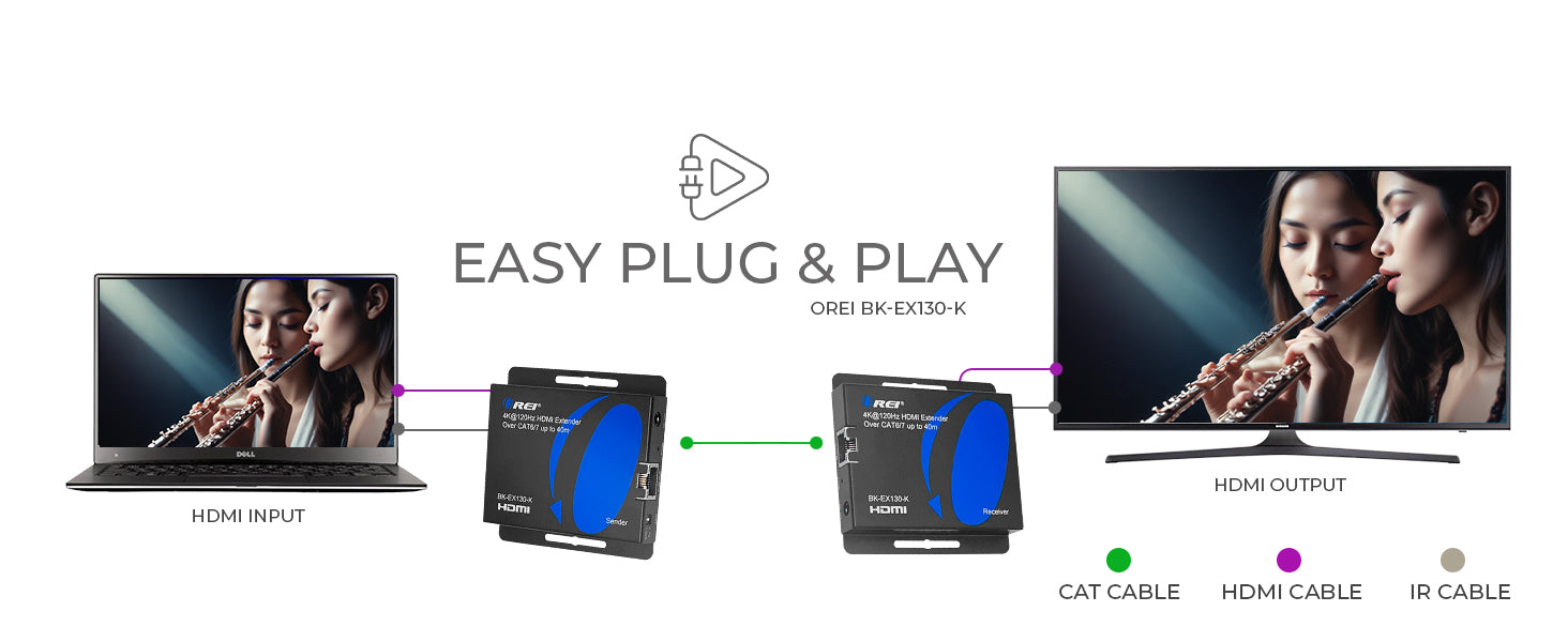 BK-EX130-K: 4K@120Hz HDMI over CAT 6/7 up to 130 feet with EDID & Bi-Directional IR