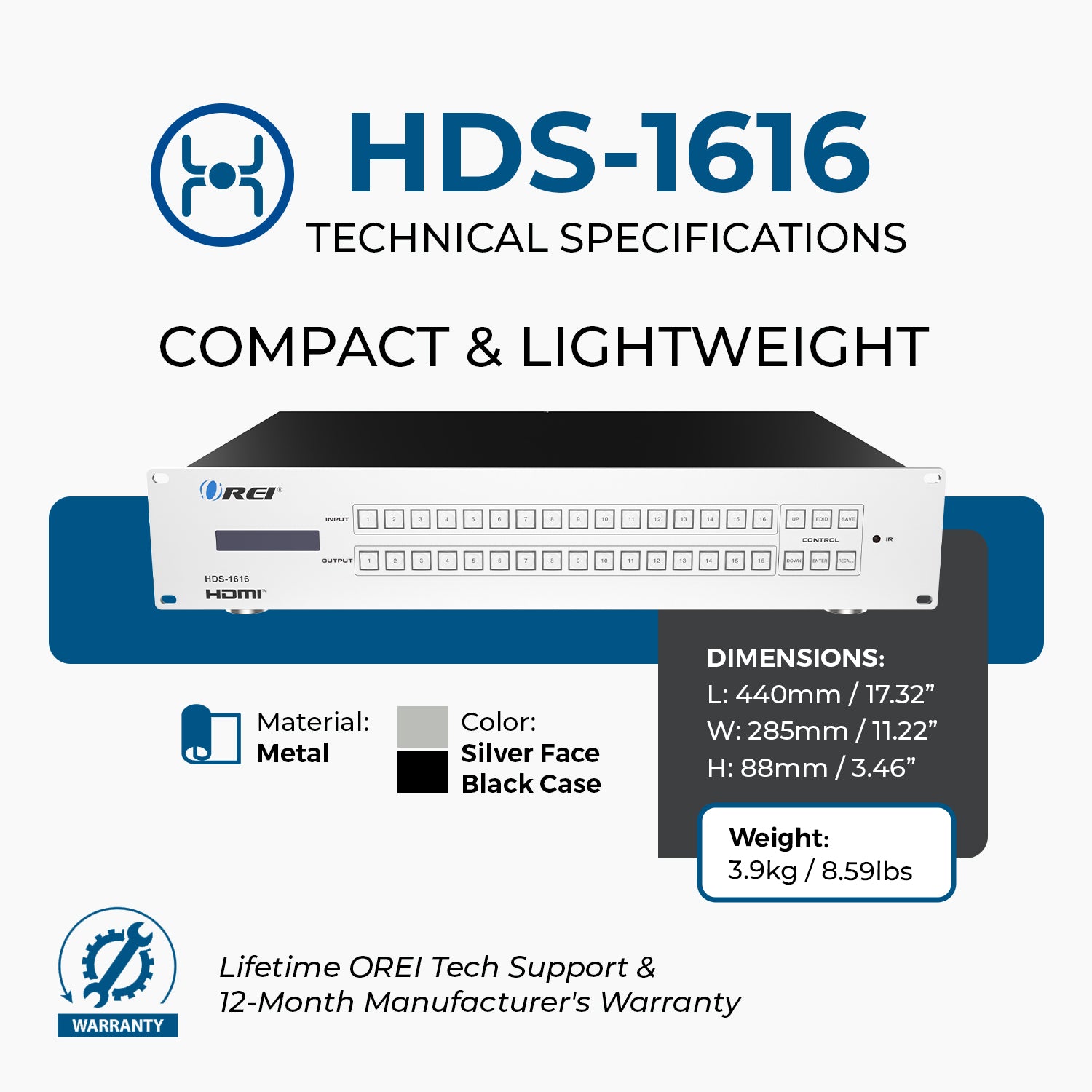 OREI HDS-1616: 4K@30HZ 16X16 HDMI™ MATRIX