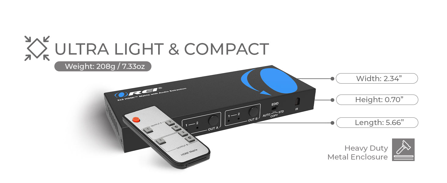 OREI 4K@30Hz 2x2 HDMI Matrix Switch with Audio Extractor (HD-202)