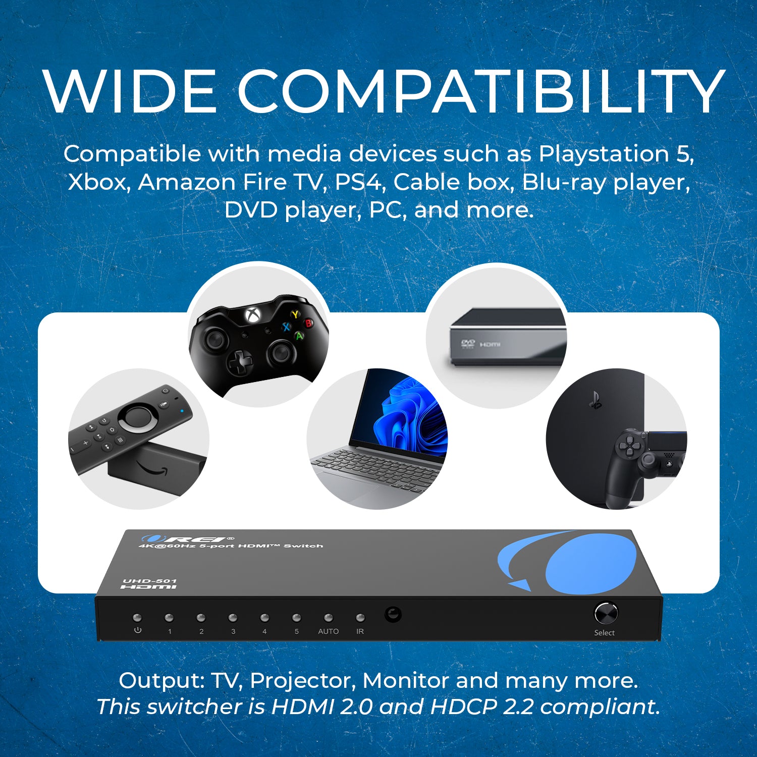 The OREI UHD-501 is a versatile 5x1 HDMI switch that lets you connect five HDMI sources—like streaming boxes, gaming consoles, and Blu-ray players—to a single 4K display. It’s the perfect HDMI selector with remote for simplifying AV setups without sacrificing performance or convenience, ideal for home theaters and professional environments.