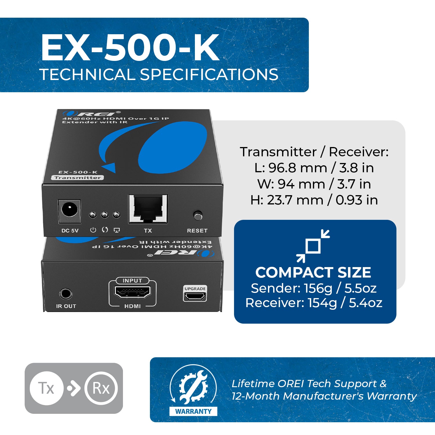 OREI EX-500-K: 4K@60Hz HDMI Over 1G IP Extender with lR