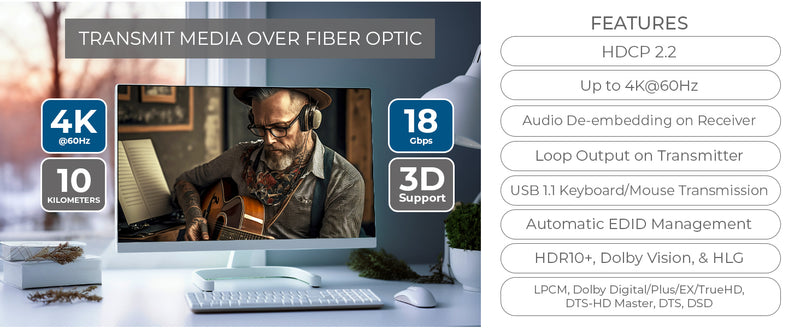 4K@60Hz HDMI™ Extender (Loop) - 10km (Fiber-Optic) - UHD-FO10-KVM