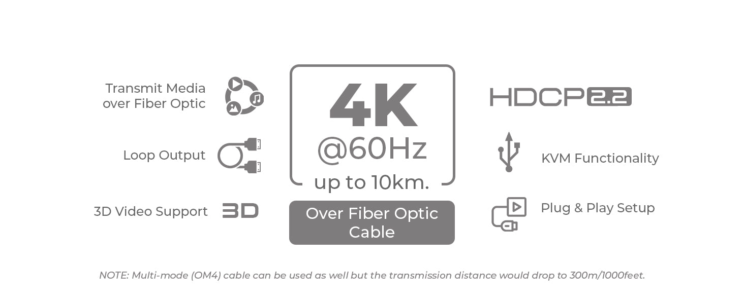 - Extend 4K@60Hz Signals up to 10Km(~33000 ft.)
