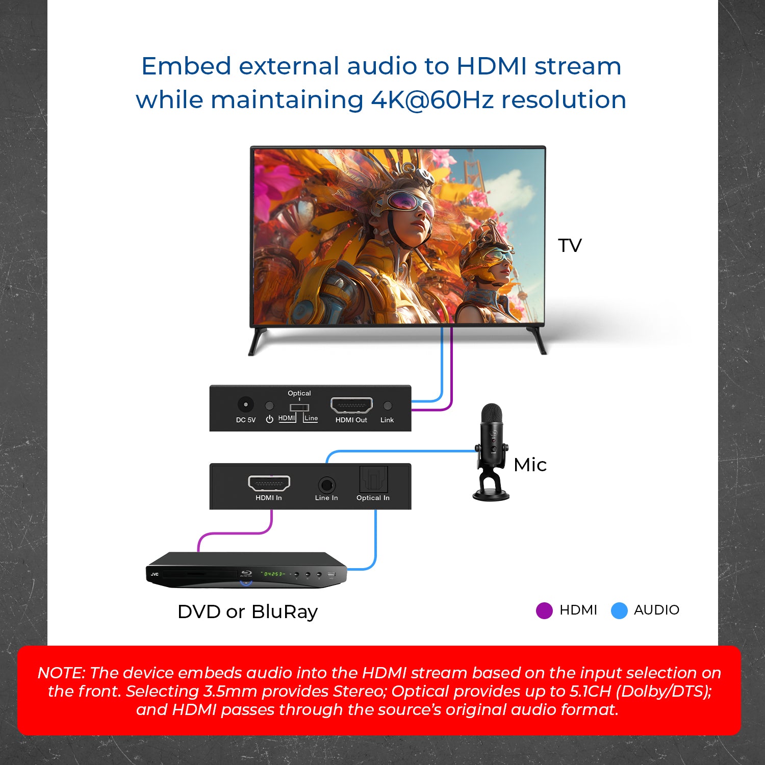 4K HDMI™ Audio Embedder (3.5mm, Optical)-HDA-4KMB