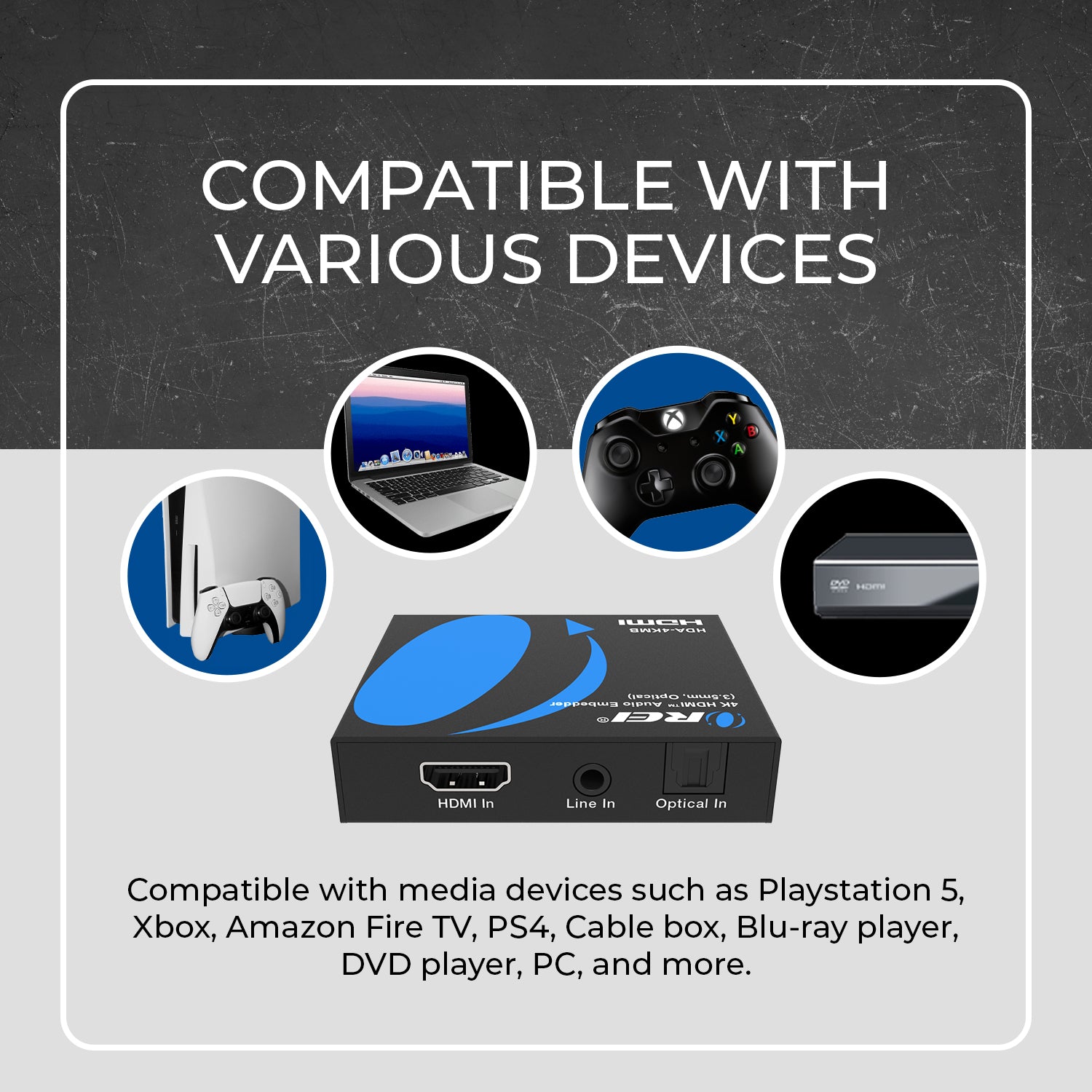 It also supports high-resolution digital audio formats such as Dolby Atmos, Dolby TrueHD, DTS-HD Master Audio, and more, ensuring an immersive audio-visual experience. Ideal for home theater systems, commercial AV installations, and professional applications where audio integration with HDMI™ output is required, the HDA-4KMB offers reliable, high-quality performance in a compact design