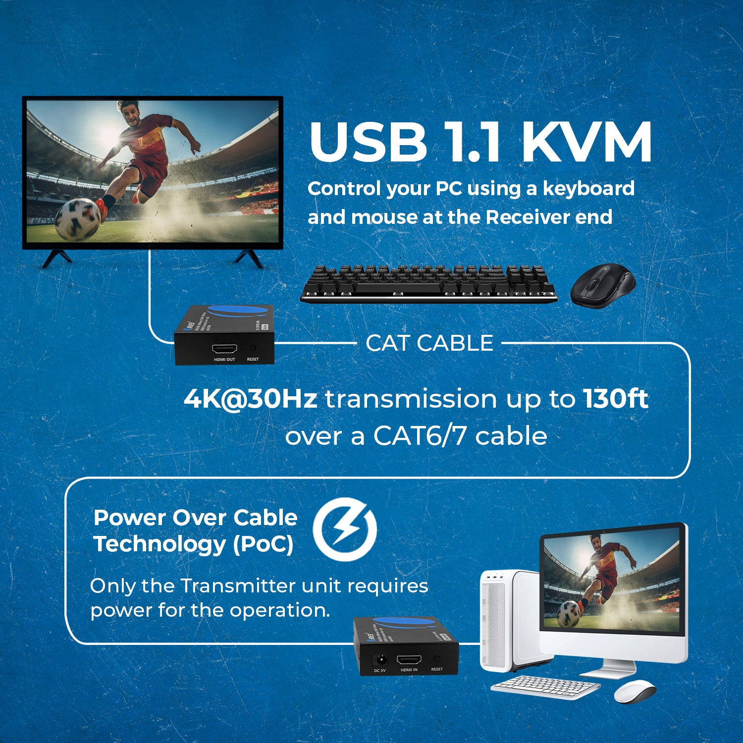 4K@30Hz HDMI™ Extender (KVM) - 130ft (cat6)-EX-230PRO-KVM