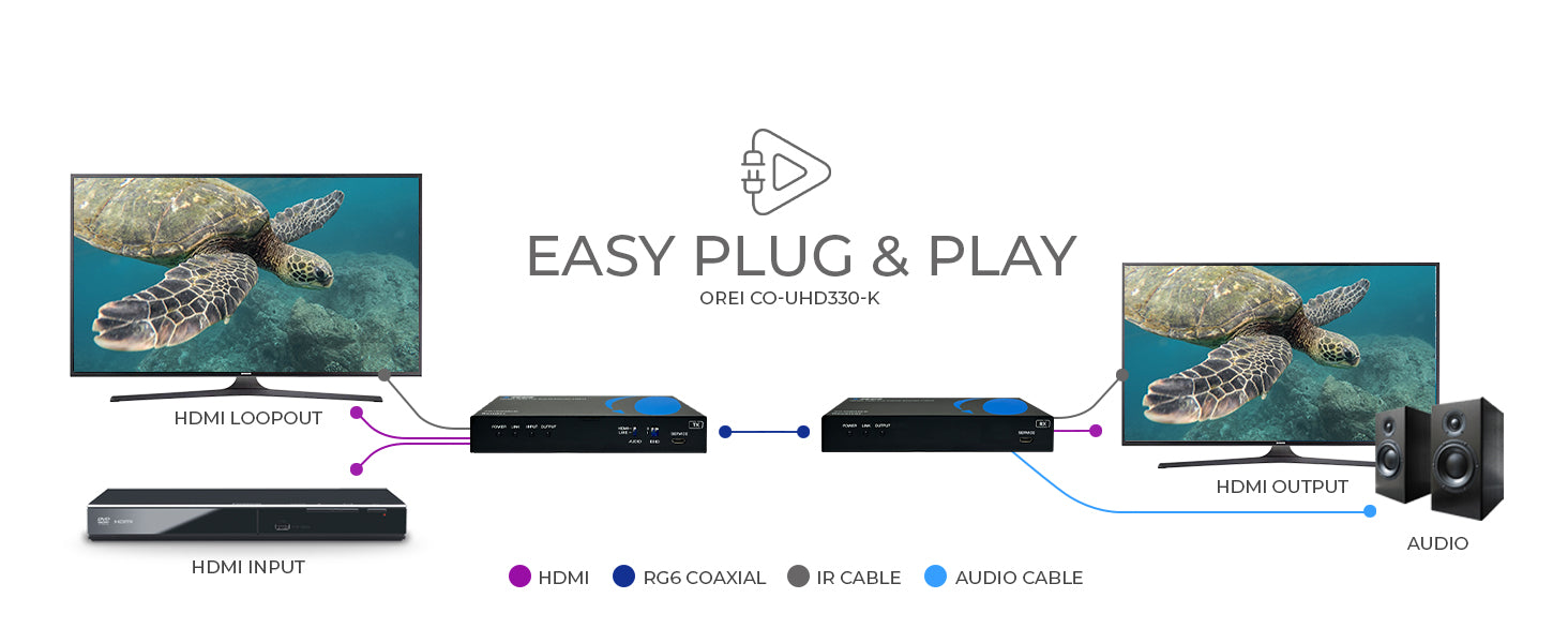 OREI CO-UHD330-K HDMI Over Coaxial Extender up to 330FT
