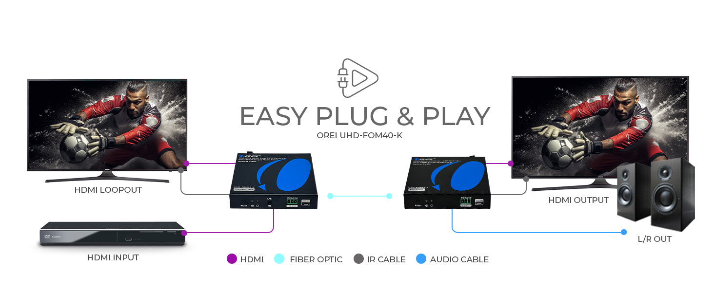 Powered by ipcolor STREAM technology, the UHD-FOM40-K delivers visually lossless video with ultra-low latency. Its 18Gbps bandwidth supports the full range of HDMI 2.0 video formats, including 4K@60Hz, making it an excellent choice for AV professionals who need sharp resolution and smooth playback. With HDMI loop-out on the transmitter, local monitoring near the source is effortless, adding convenience for operators and installers.