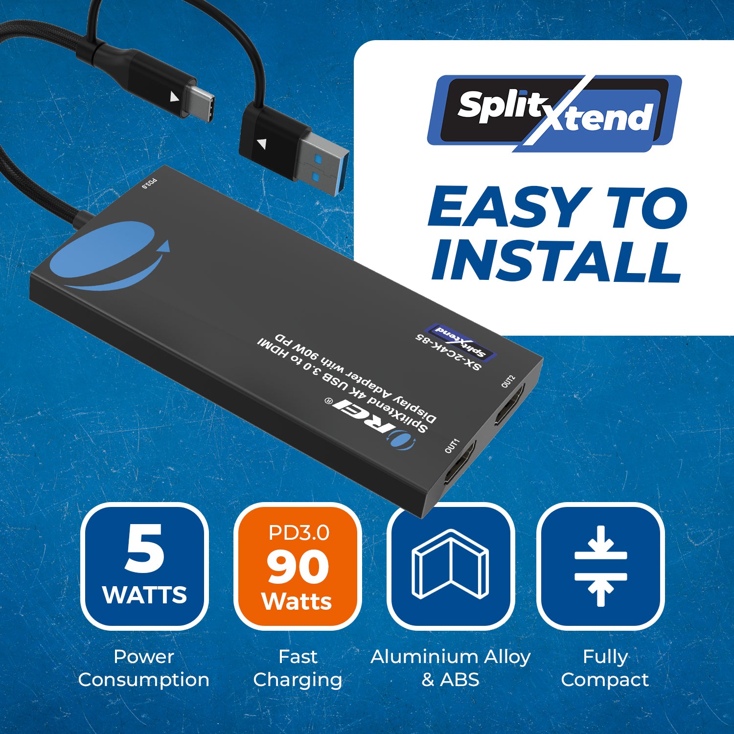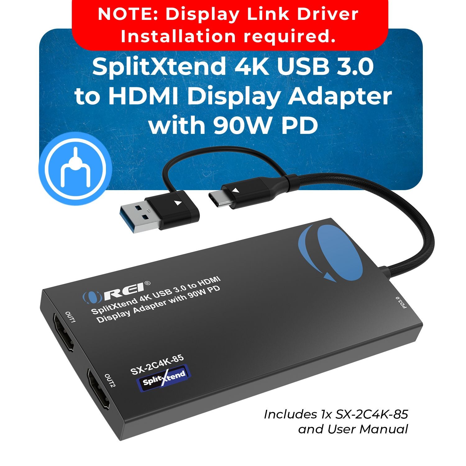 SplitXtend 4K USB 3.0 to HDMI Display Adapter with 90W PD (SX-2C4K-85)
