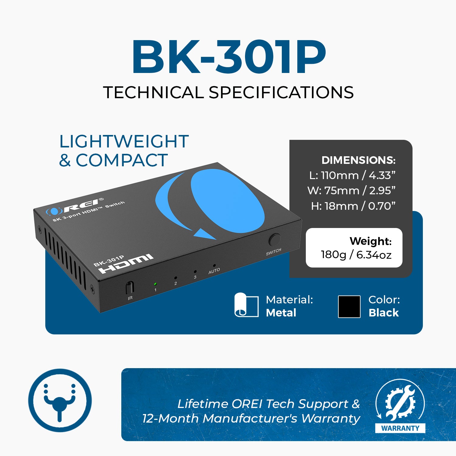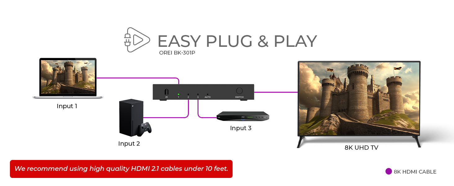 OREI BK-301P: 8K 3-PORT HDMI™ SWITCH