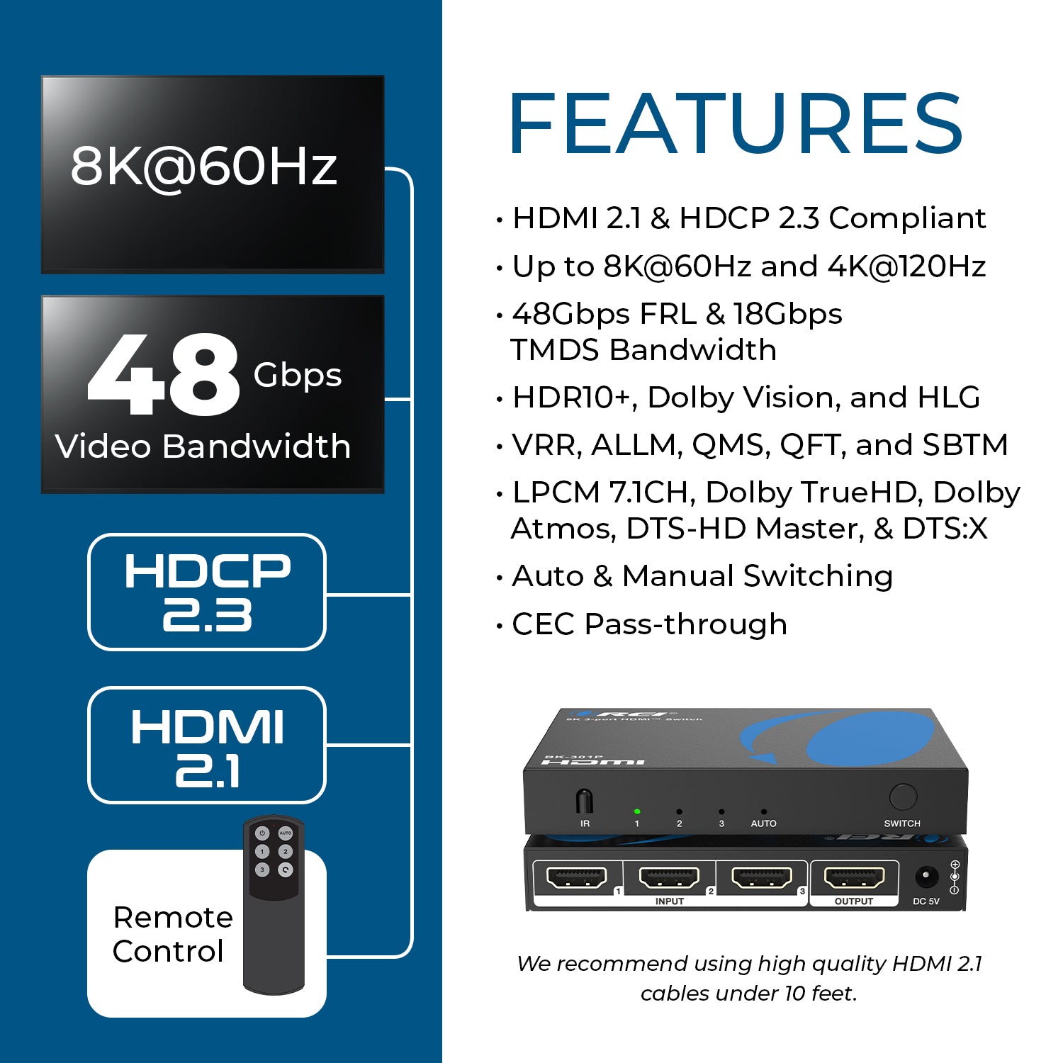 8K 3-port HDMI™ Switch (BK-301P)