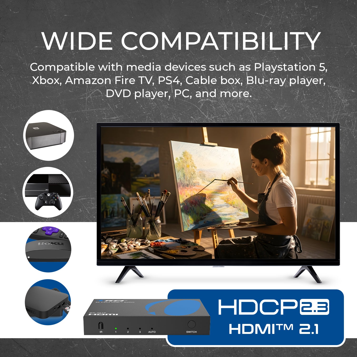HDCP 2.3 Compliant – Ensures compatibility with the latest content protection standards.