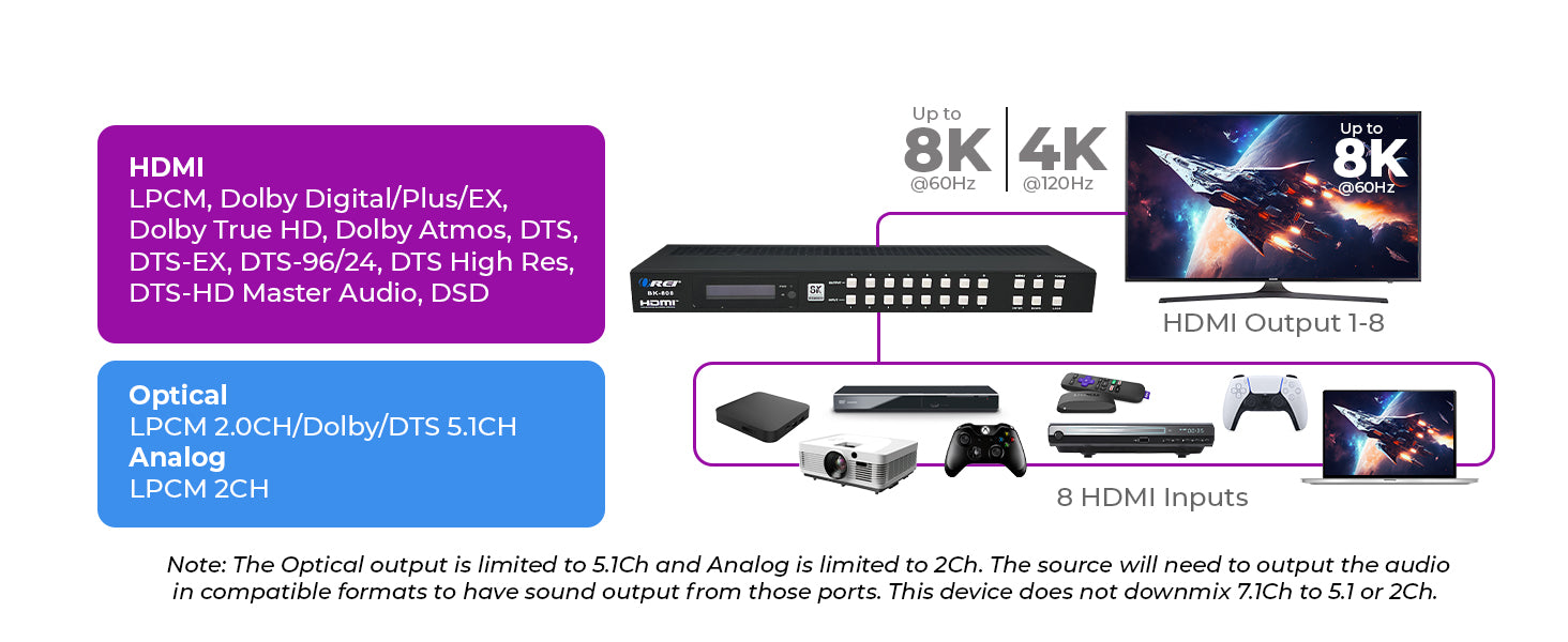 8K 8x8 HDMI™ Matrix (Audio Extract)-BK-808