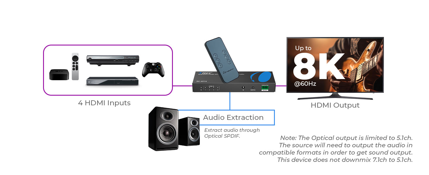8K 4-port HDMI™ Switch (Audio Extract)-BK-401A