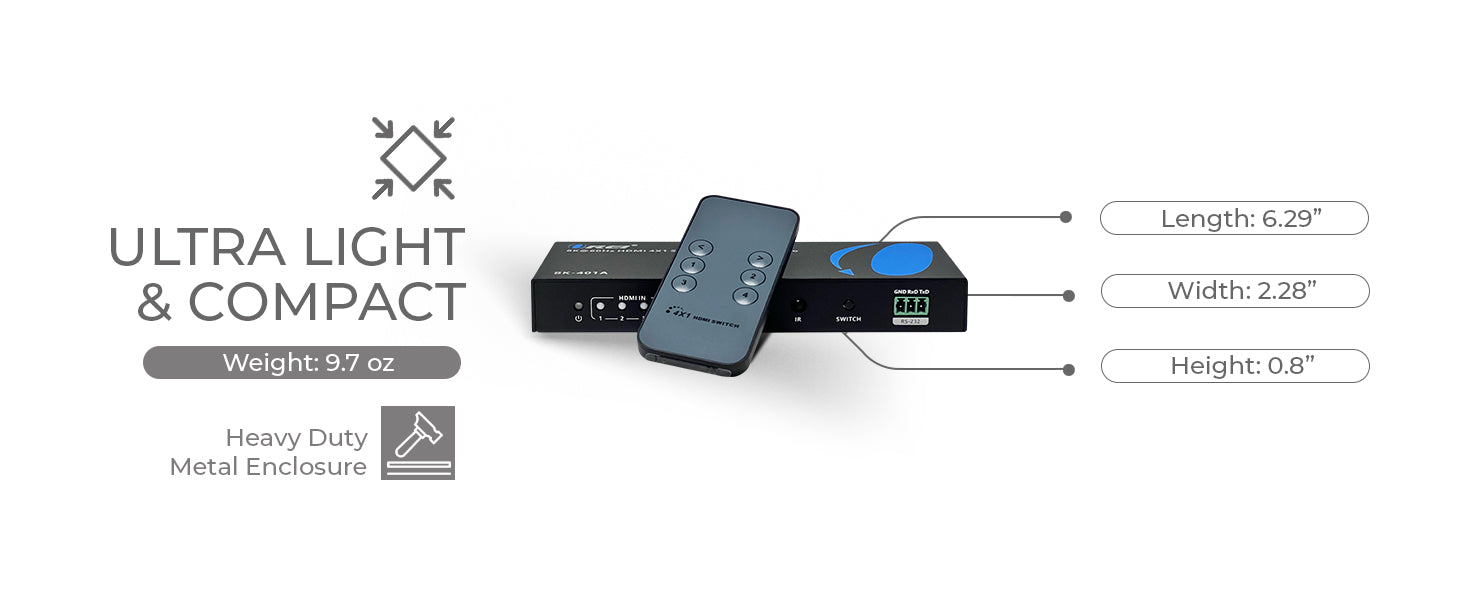 - Multiple Control Options – Easily switch inputs via front-panel button, IR remote, or RS-232 commands.