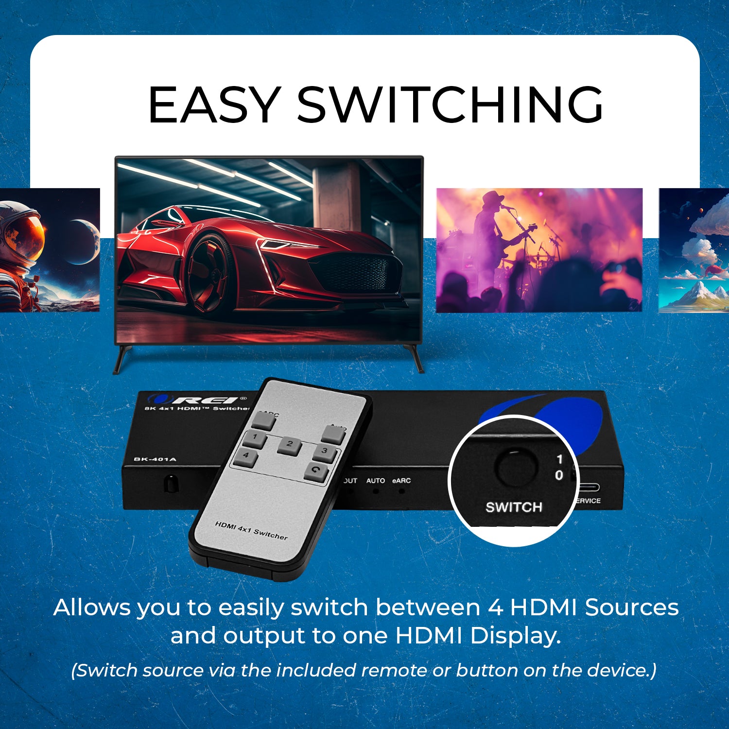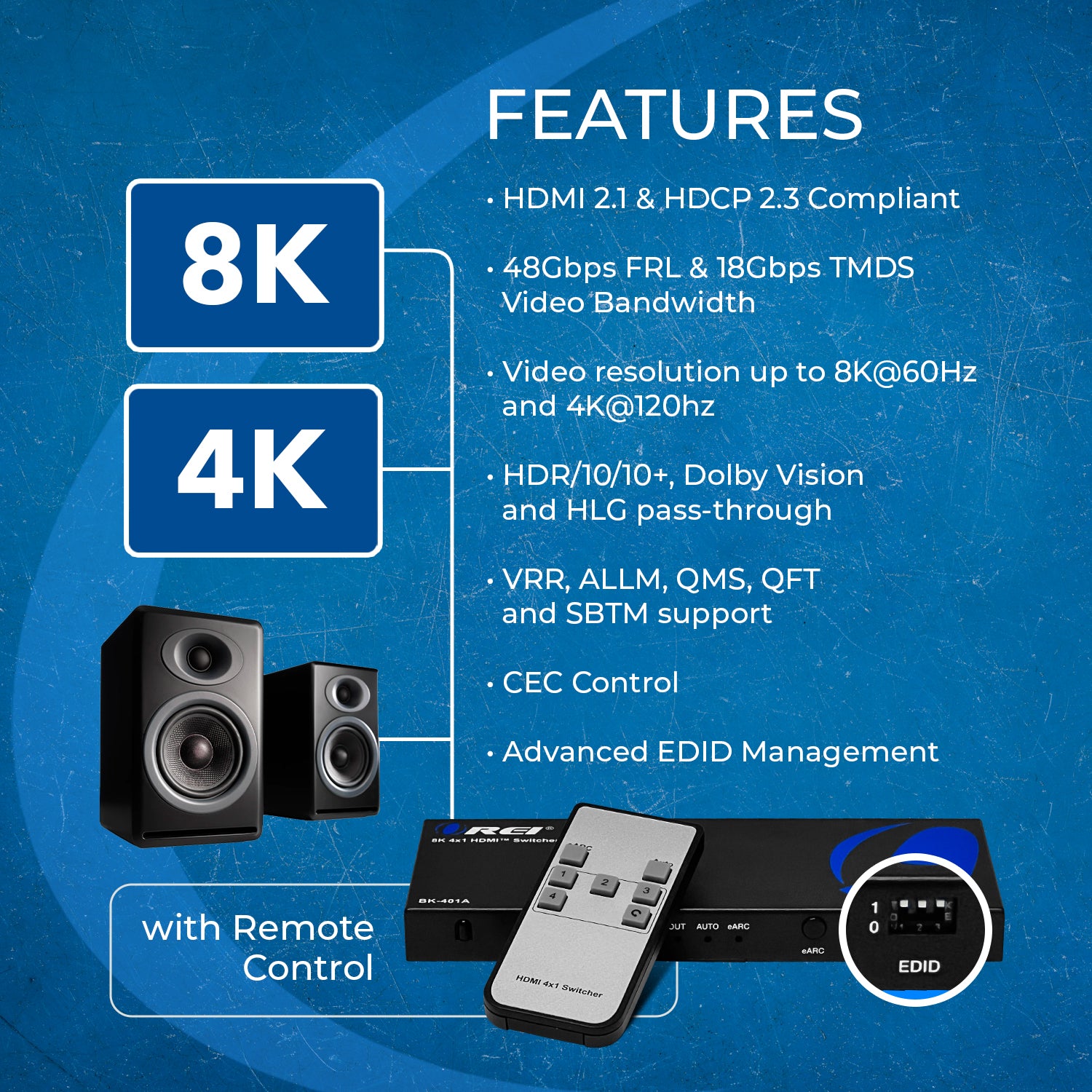 8K 4-port HDMI™ Switch (eARC, Audio Extract)-BK-401ARC